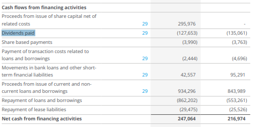 Se puede corroborar echando un vistazo en el informe anual, en el estado de flujos de efectivo: