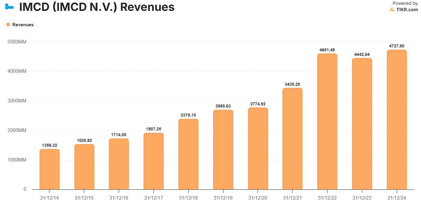 La facturación de IMCD no ha parado de crecer en todos estos años, apoyada en una sólida estrategia de adquisiciones.