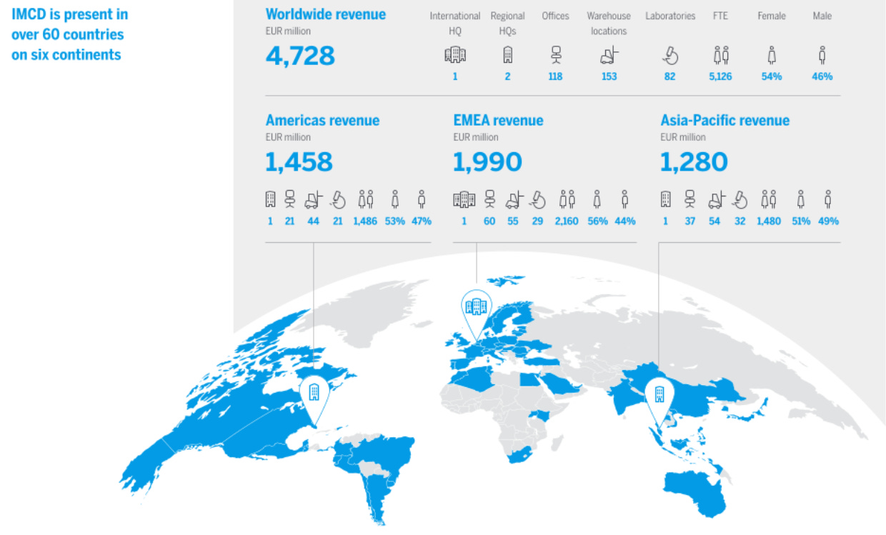 IMCD es una empresa completamente global. Presente en prácticamente todas las geografías, aunque con más dependencia de Europa que de el resto.